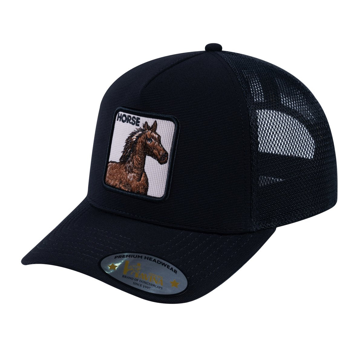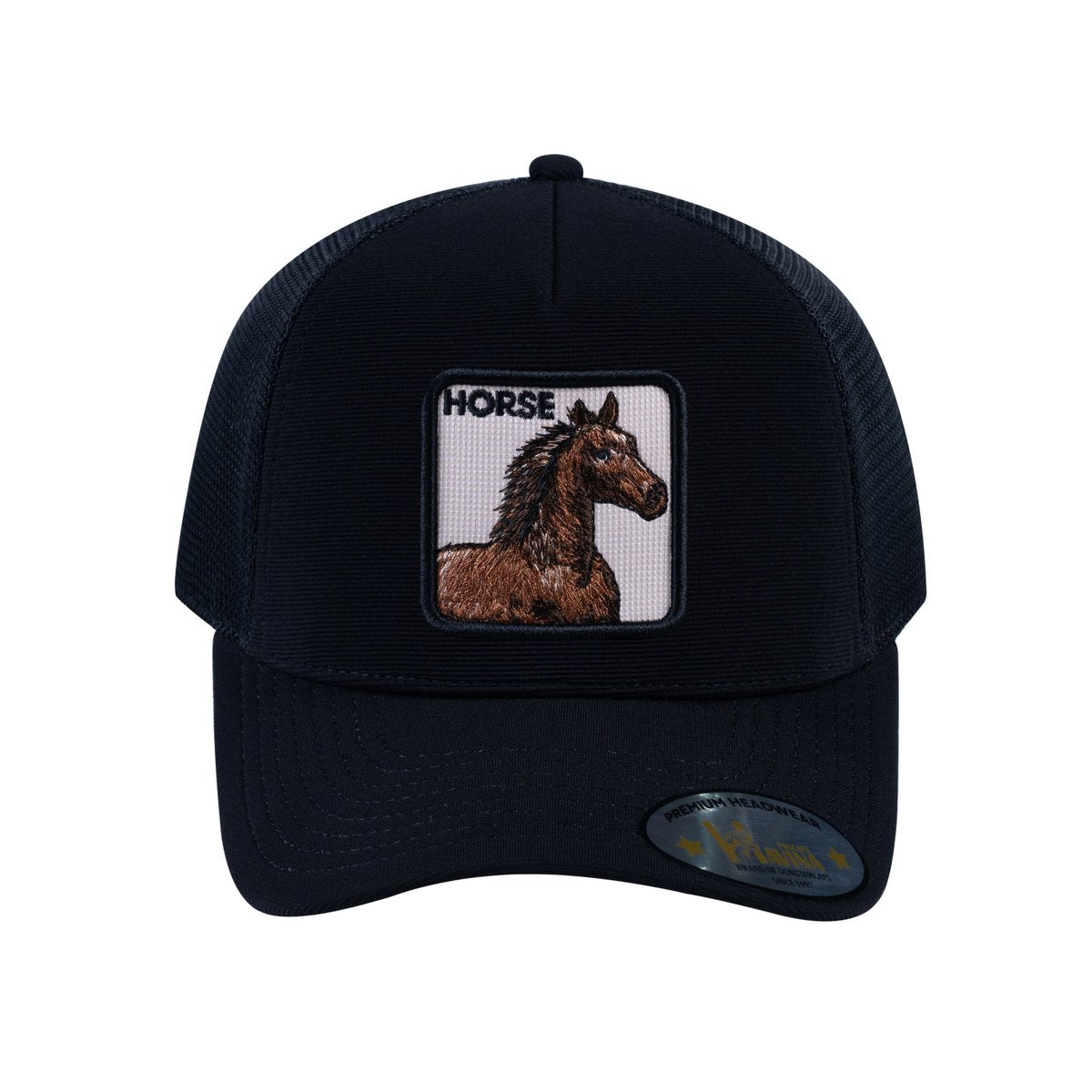V2 Embroidered The Horse - 5 Panel Trucker Hat - Black/Black