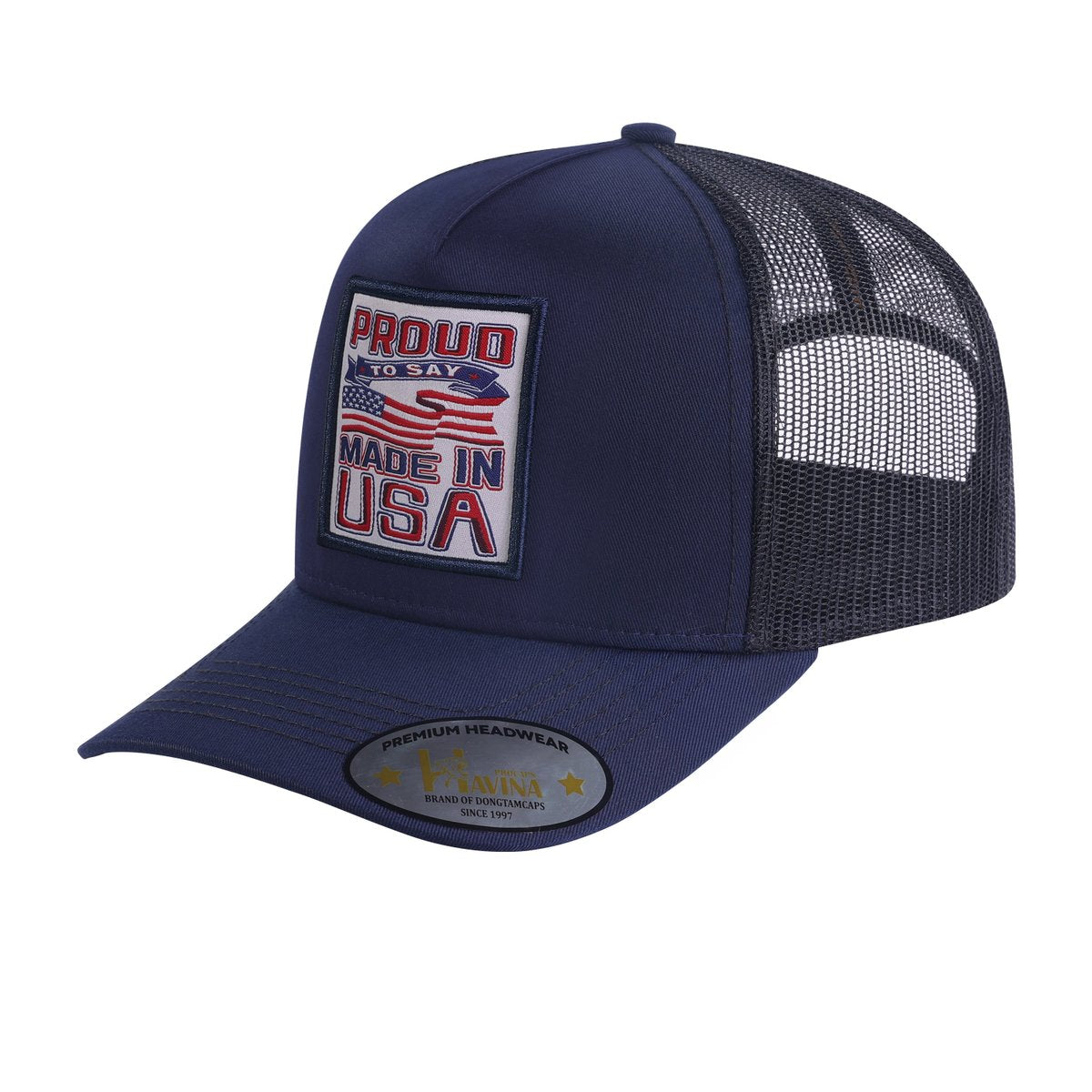 Embroidered Proud To Say Made In Usa - 5 Panel Trucker Hat - Navy/Black