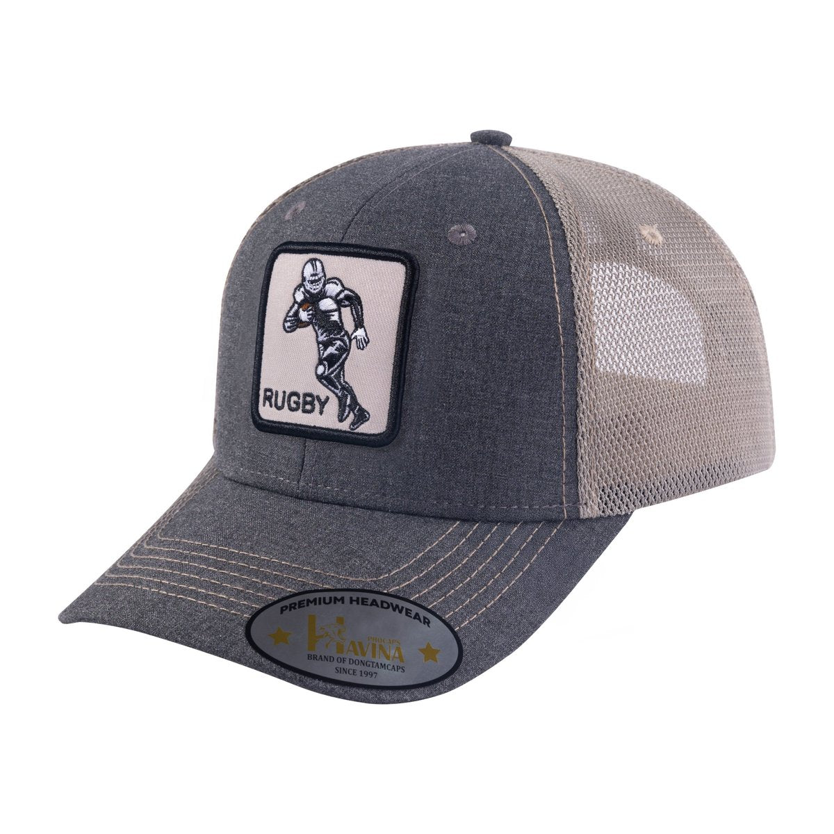 Embroidered Rugby/Football - 6 Panel Trucker Hat - Dark Grey/Khaki