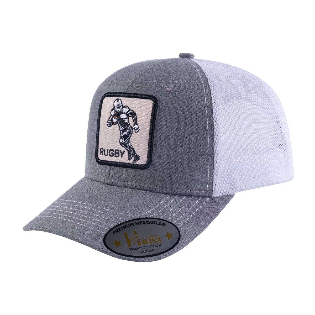 Embroidered Rugby - 6 Panel Trucker Hat - Light Grey/White