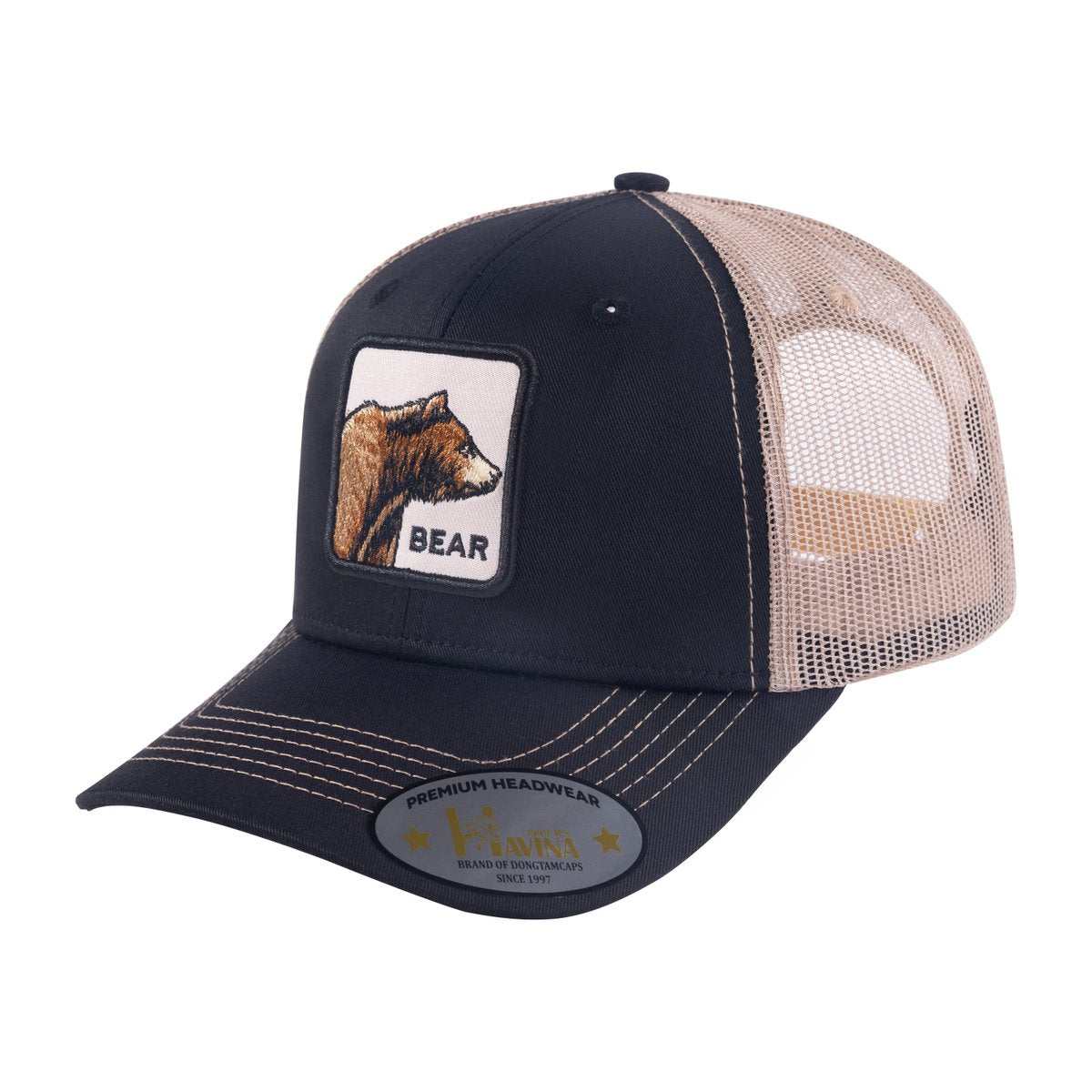 Embroidered The Bear - 6 Panel Trucker Hat - Black/Khaki