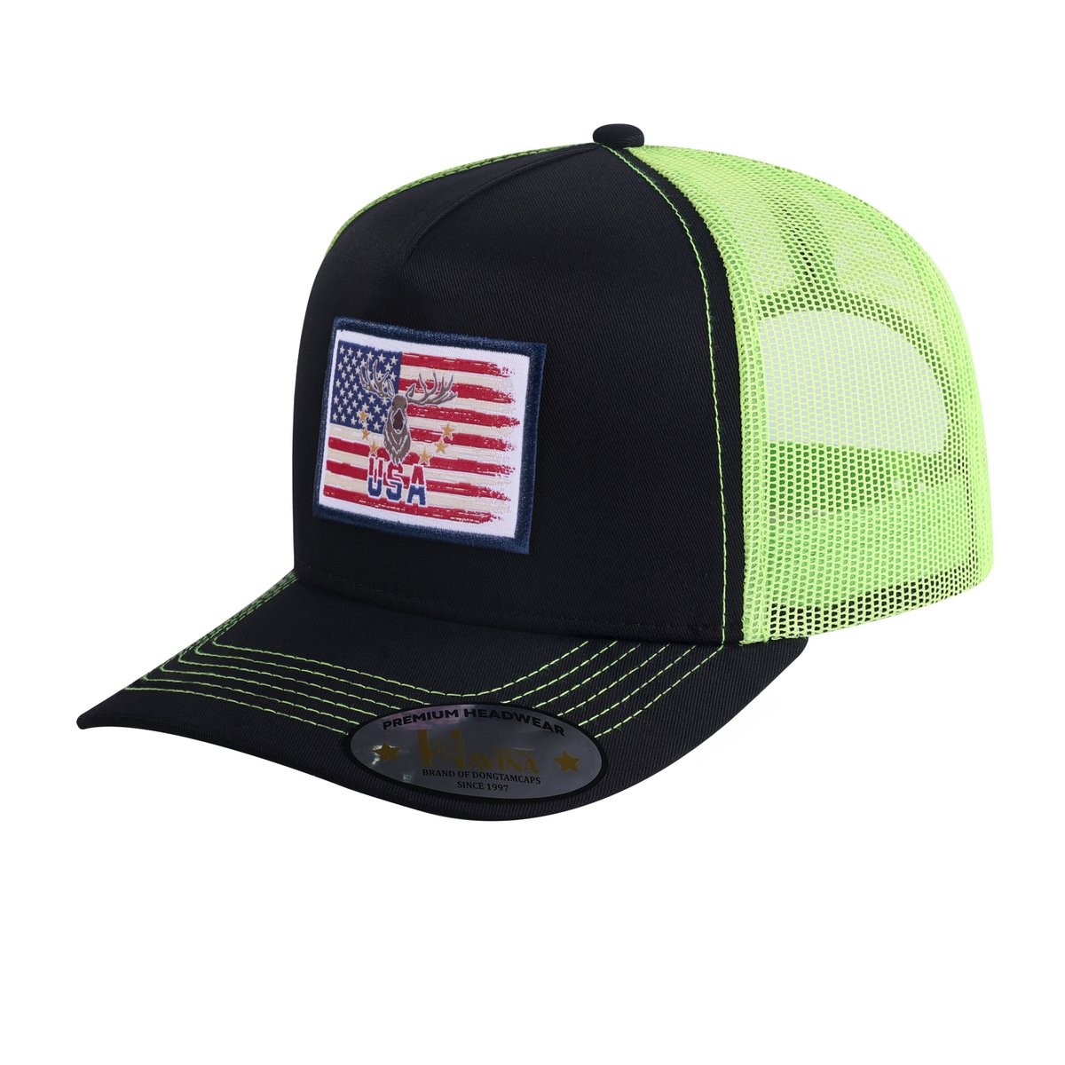 Embroidered US Deer Hunter - 5 Panel Trucker Hat - Black/Green