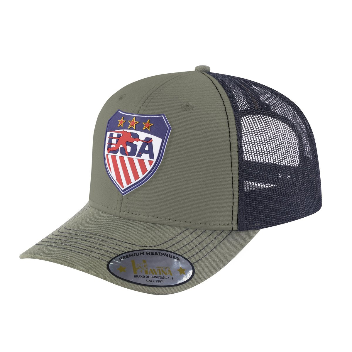 Embroidered US Loving Hockey - 6 Panel Trucker Hat - Olive Green/Black