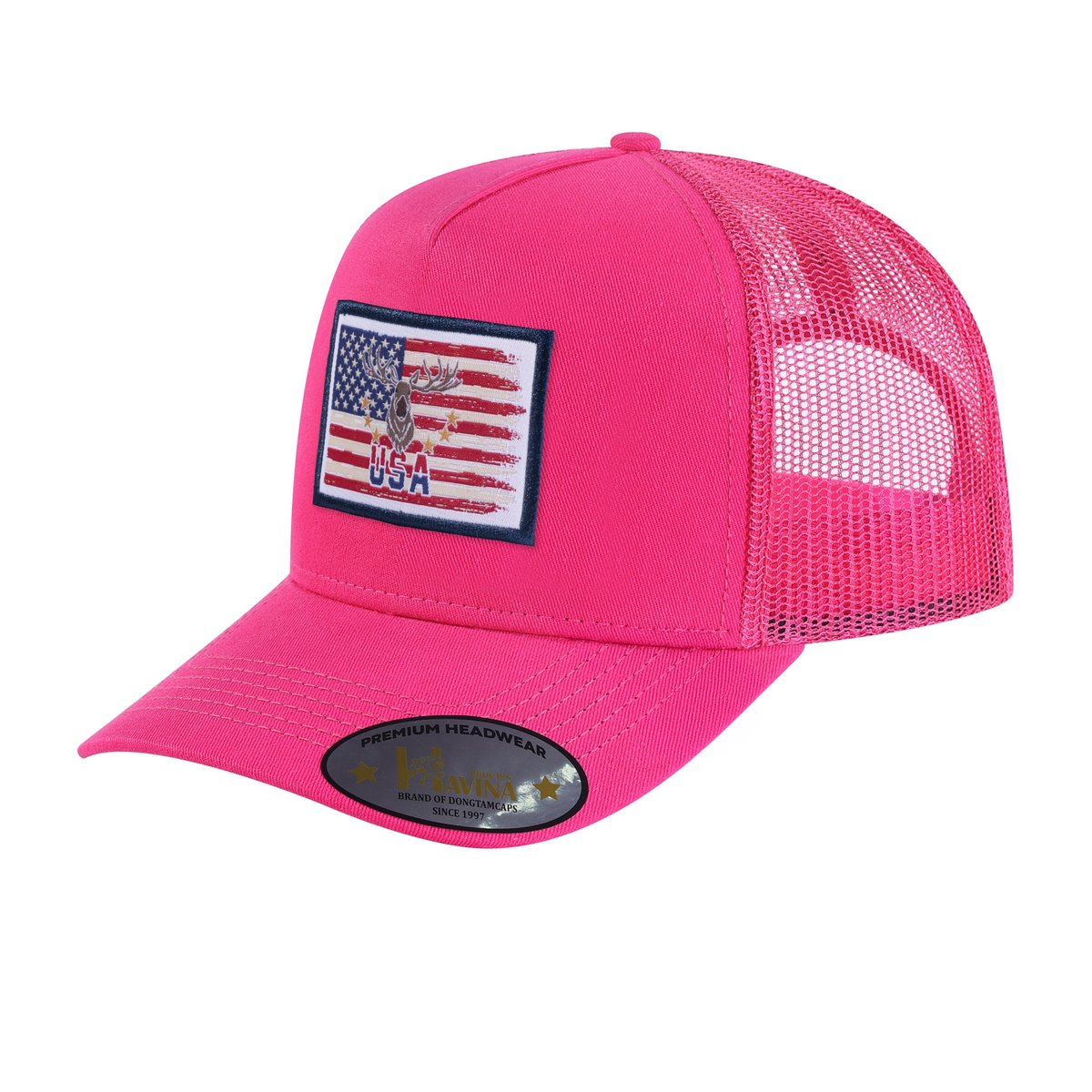 Embroidered Usa Deer Hunter - 5 Panel Trucker Hat - Pink/Pink