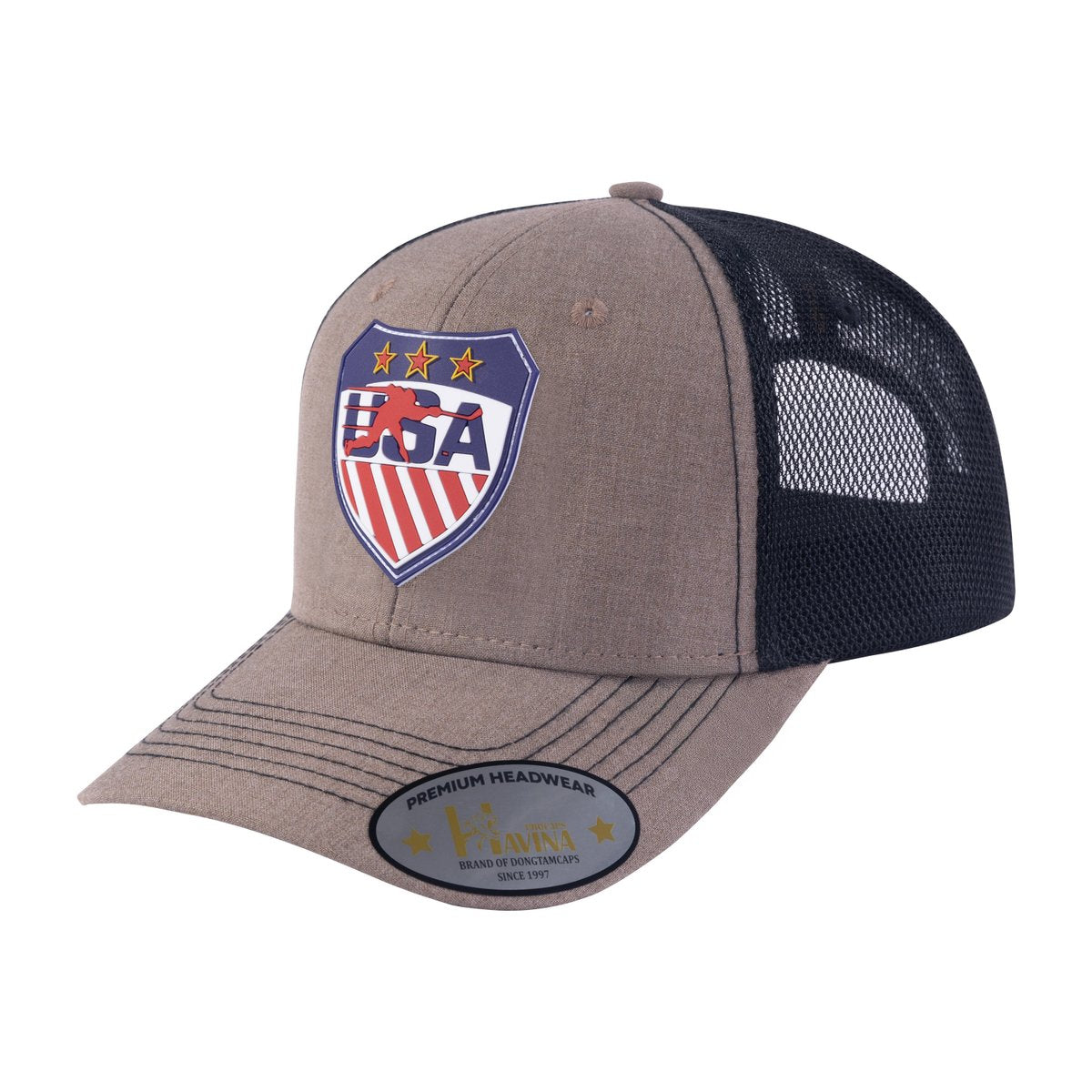 Embroidered Usa Hockey - 6 Panel Trucker Hat - Light Brown/Black