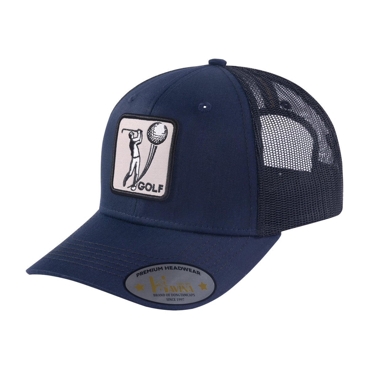 Embroidered Golf - 6 Panel Trucker Hat - Navy/Black