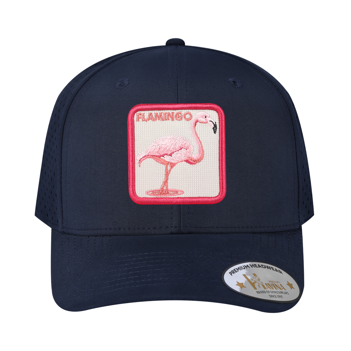 Embroidered The Flamingo - 6 Panel Microfiber Laser hole Trucker Hat - Navy/Navy
