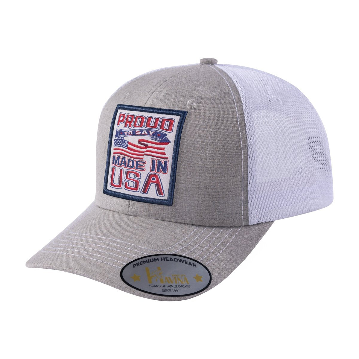 Embroidered Proud To Say Made In US - 6 Panel Trucker Hat - Khaki/White