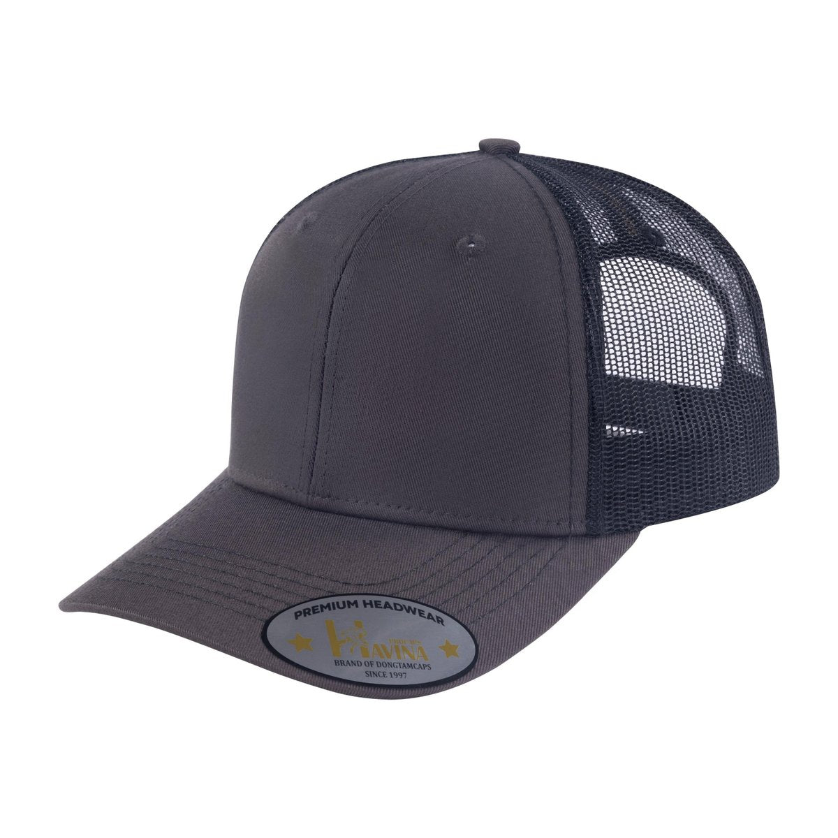 Blank - 6 Panel Trucker Hat - Dark Grey/Black
