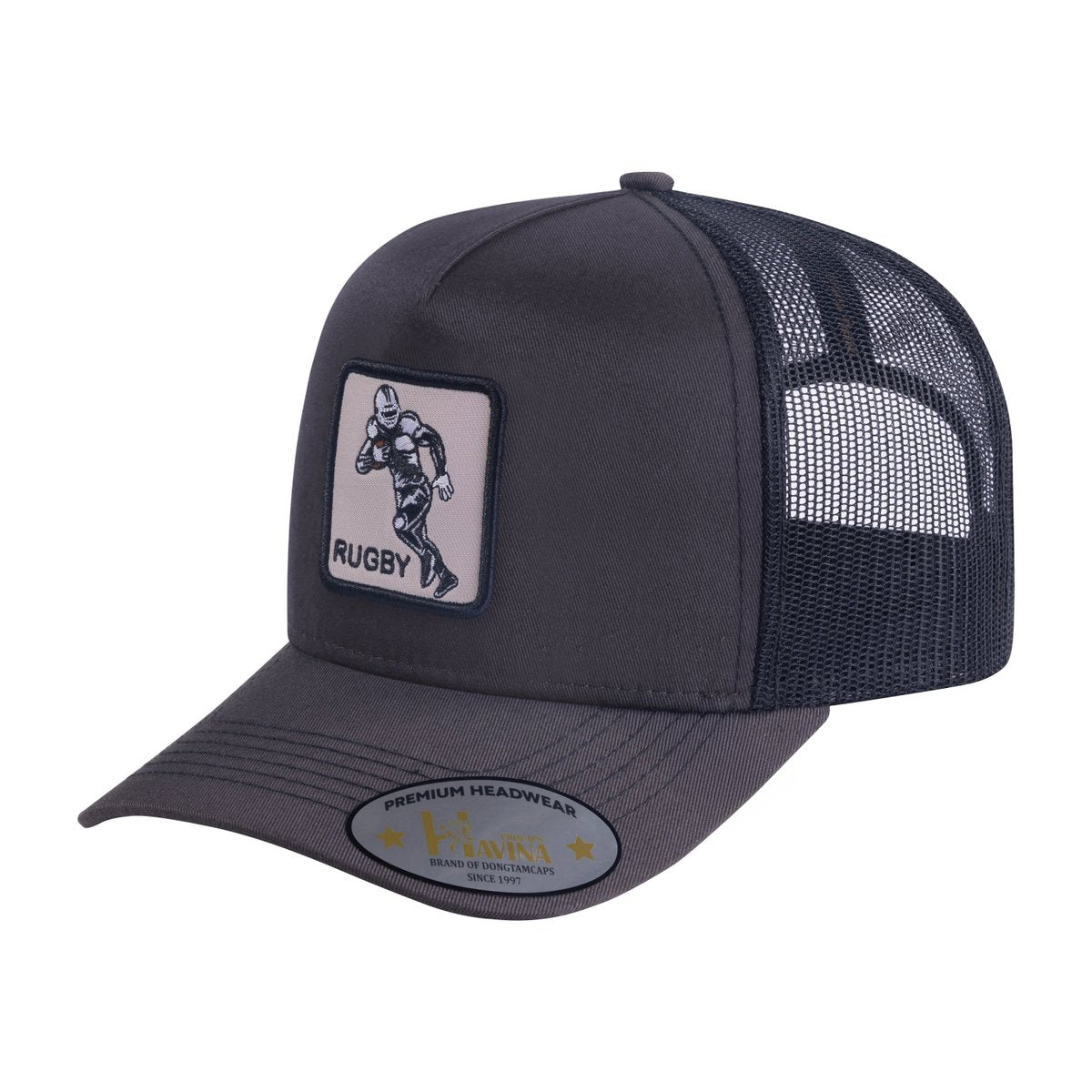 Embroidered Rugby - 5 Panel Trucker Hat - Dark Grey/Black